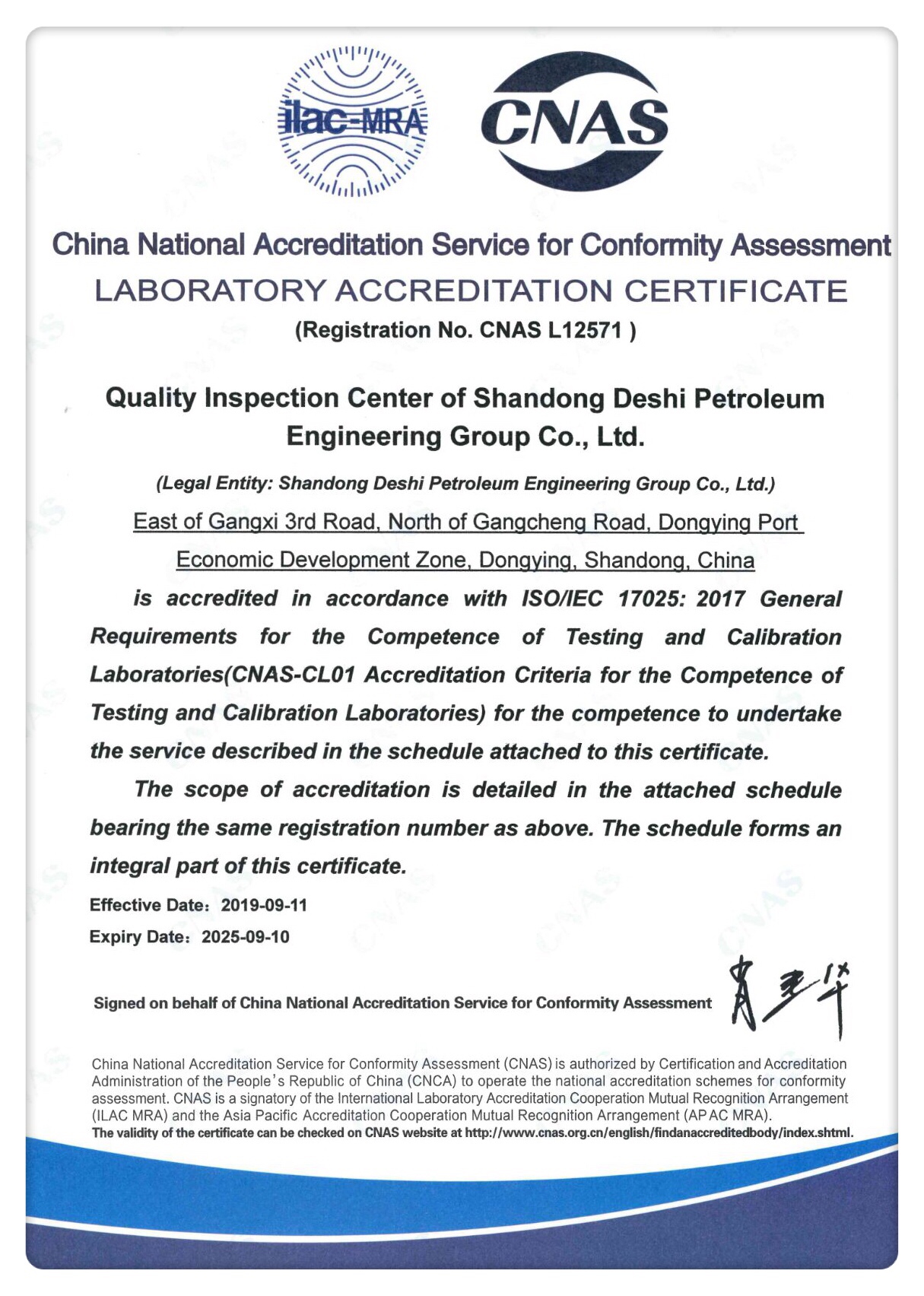CNAS (Китайская национальная служба аккредитации для оценки соответствия) ,в настоящее время является единственным учреждением в Китае, которое имеет право выдавать национальные лабораторные квалификации.Благодаря сертификации CNAS, уровень управления и возможности тестирования в центре контроля качества Группы были признаны во всем мире. отчет о проверках который представленный нашей компанией, будет признан 65 учреждениями в 50 странах и регионах мира.