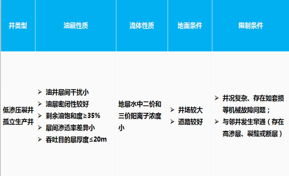 复合吞吐方法适用的范围很宽,不存在严格的条件限制。它可以用于稠油,也可以用于稀油;既可以用于高渗透性油藏,也可以用于低渗透性油藏。对于井间流通性差、其它提高采收率方法不能见效的小断块、岩性复杂的小型油藏,更具有优越性。